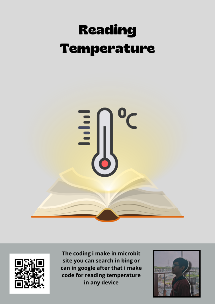 Tinggalkan Komentar / Oleh yunkal11 / 23 Agustus, 2024 Reading ttemperature is a coding in microbit site i make it for learning can check my laptop temperature.And if you want check how to read the temperature device you can watch my youtube video and the name video is:How to make a coding for reading temperature in any device with Microbit